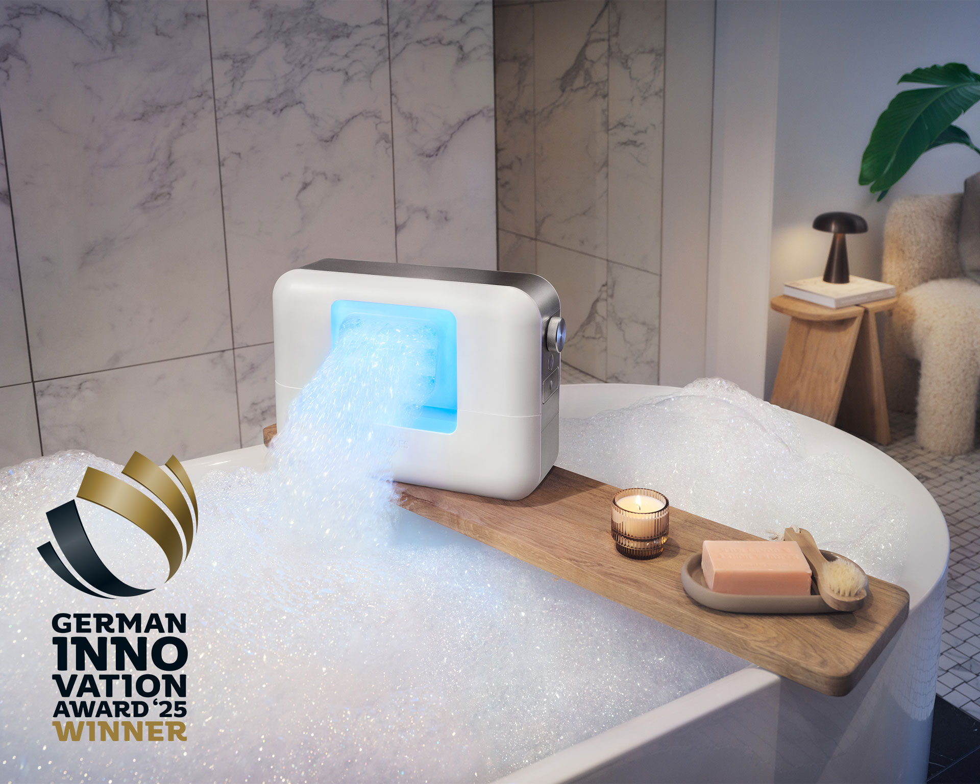 Das ESPURO® CloudSPA basiert auf einer neu entwickelten und patentierten Technologie von KLAFS, mit der wir Schaum neu erfunden haben. Ohne externe Anschlüsse und allein durch die gezielte Kombination von Wasser, Luft und einer speziell entwickelten Schaum-Essenz entsteht ein besonders gleichmäßiger und stabiler Schaum. Seine außergewöhnlich feine Struktur umhüllt den Körper sanft, versorgt die Haut mit pflegenden Wirkstoffen und schafft ein völlig neues, luxuriöses Pflegeerlebnis – ergiebig, wohltuend und unvergleichlich in seiner Qualität. Diese innovative Schaumtechnologie trifft auf ein puristisches, zeitloses Design. Elegant in Weiß gehalten und mit feinen Akzenten veredelt, strahlt das ESPURO® CloudSPA mit seinen harmonischen Proportionen eine Ästhetik der Ruhe und des Wohlbefindens aus. Entwickelt in Zusammenarbeit mit dem renommierten Studio F. A. Porsche, ist es die perfekte Symbiose aus Funktion und Form, durchdacht bis ins kleinste Detail. Diese unverwechselbare Verbindung von innovativer Technologie und herausragendem Design wurde mit dem German Innovation Award 2025 ausgezeichnet.